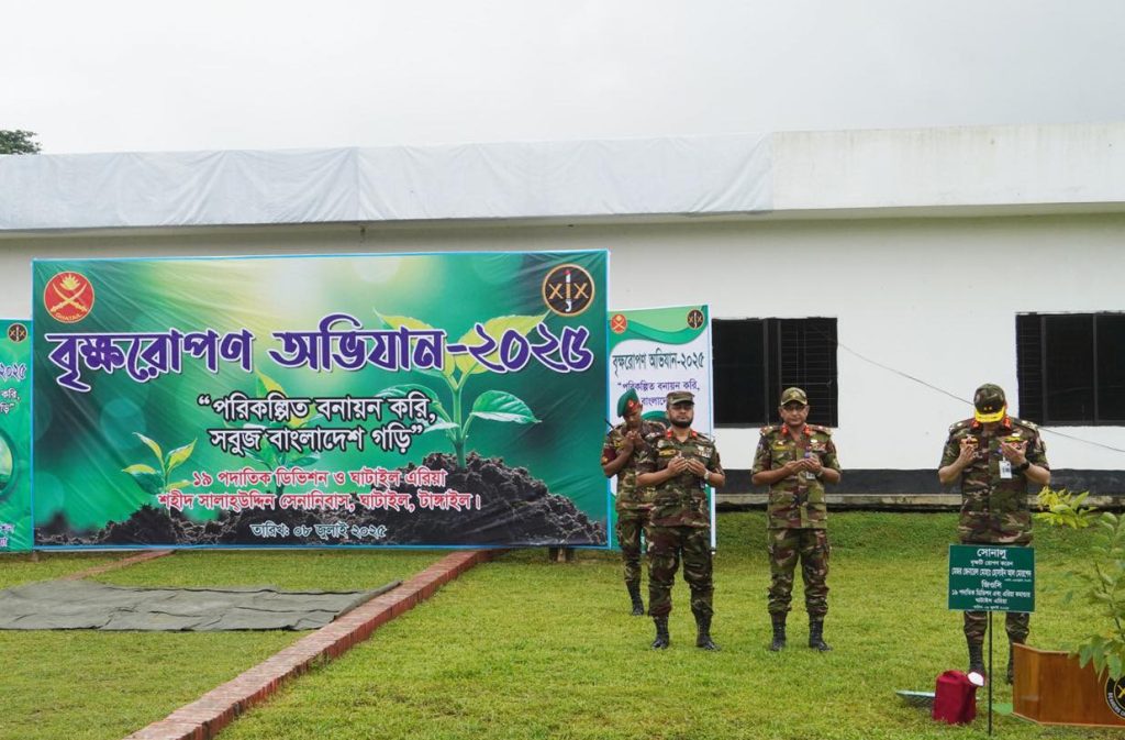 ঘাটাইল অঞ্চলে বৃক্ষরোপণ অভিযান-২০২৫ উপলক্ষে বৃক্ষরোপণ করেন জিওসি ১৯ পদাতিক ডিভিশন