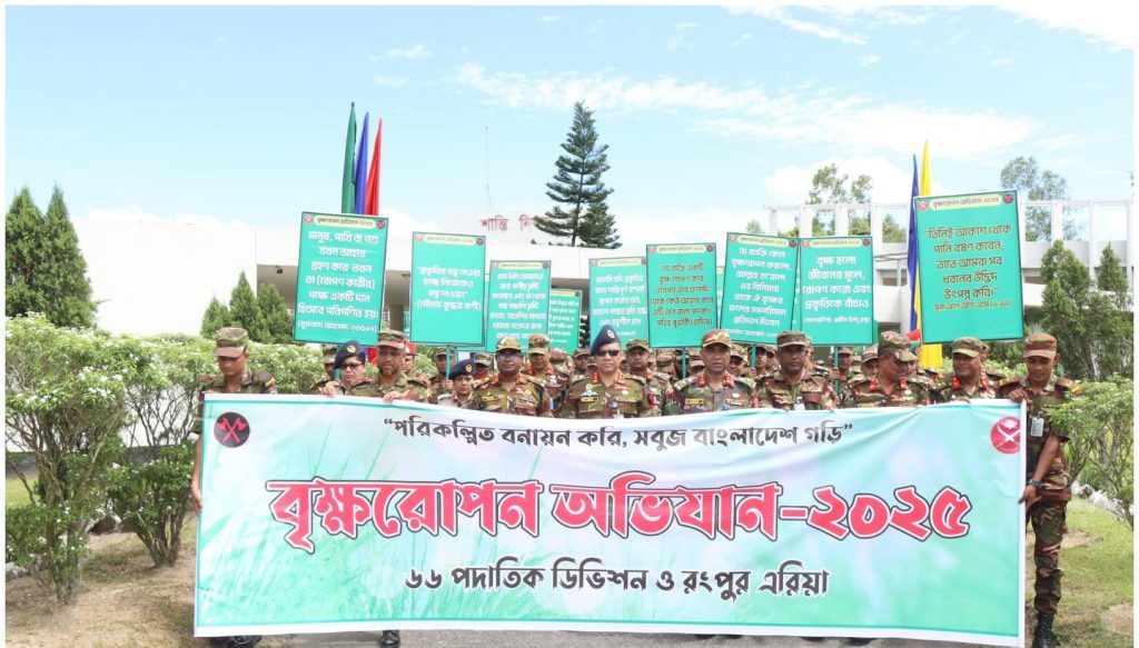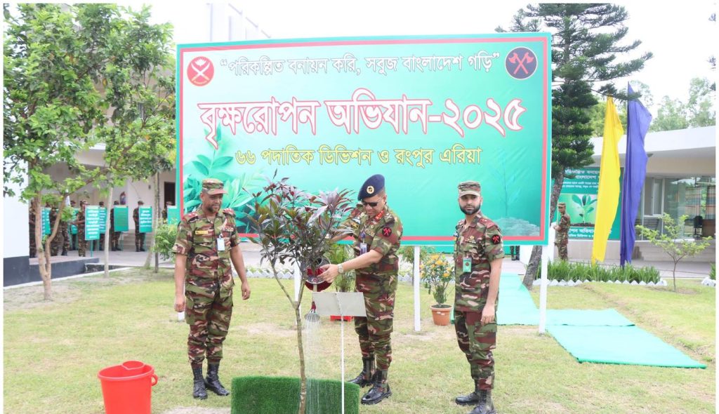 ৬৬ পদাতিক ডিভিশন এবং রংপুর অঞ্চলের বৃক্ষরোপণ অভিযান-২০২৫ উদ্বোধন করেন জিওসি ৬৬ পদাতিক ডিভিশন এবং এরিয়া কমান্ডার রংপুর এরিয়া