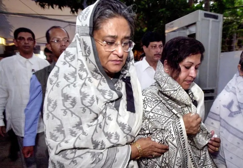 শেখ হাসিনা, বোন শেখ রেহানার সঙ্গে, ২০০১ সালের ১৫ অগাস্টে তোলা ছবি