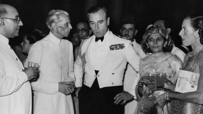 ১৪ই অগাস্ট, ১৯৪৭, করাচীতে পাকিস্তানের স্বাধীনতা দিবসে মুহাম্মদ আলী জিন্নাহর সঙ্গে লর্ড মাউন্টব্যাটেন
