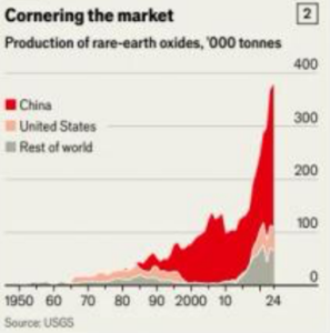 ২০২৫ সালের এপ্রিলে চীন সাত ধরনের বিরল খনিজ রপ্তানিতে নিয়ন্ত্রণ আরোপ করলে বৈশ্বিক সাপ্লাই চেইন ভেঙে পড়ে। ফোর্ড ও সুজুকির মতো গাড়ি নির্মাতাদের উৎপাদন বন্ধ হয়ে যায়। রপ্তানি অনুমোদনের প্রক্রিয়ায় বিলম্ব, লাইসেন্সের সীমিত মেয়াদ এবং হঠাৎ পরিবর্তন—সব মিলিয়ে পশ্চিমা বিশ্বকে অস্থির করে তুলেছে।