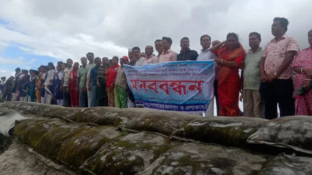 চলতি বছরের আগস্টেও আবার নতুন ভাঙন দেখা দিয়েছে। স্থানীয়রা আশঙ্কা করছেন, যেকোনও মুহূর্তে বাঁধ ভেঙে বিস্তীর্ণ এলাকা প্লাবিত হতে পারে। ২০ আগস্ট দুপুরে তারা বাঁধের ওপর দাঁড়িয়ে মানববন্ধন করেন।