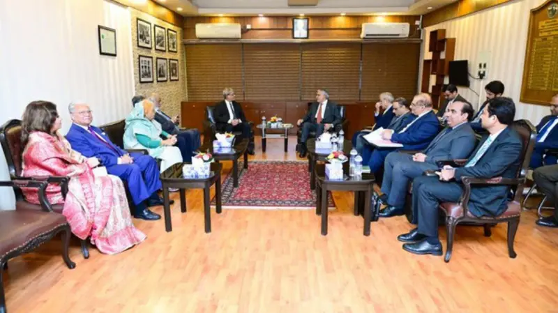 শনিবার পাকিস্তানের উপ-প্রধানমন্ত্রী ও পররাষ্ট্রমন্ত্রী মোহাম্মদ ইসহাক দারের ঢাকা সফরের আগে গত বুধবার বাংলাদেশে আসেন দেশটির বাণিজ্যমন্ত্রী জাম কামাল খান। তিনি বাংলাদেশের অন্তর্বর্তী সরকারের বাণিজ্য উপদেষ্টা শেখ বশিরউদ্দীনসহ ব্যবসায়ী নেতাদের সঙ্গেও কথা বলেন।