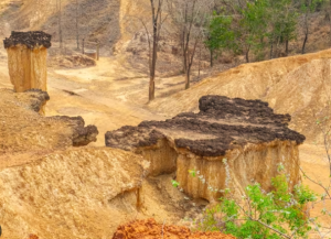 ফ্রায়ে ছেড়ে সামান্য বাঁক নিলে ফায়ে মুয়াং ফি—স্থানীয়দের কাছে ‘ভূতেদের বাগান’—আসলেই এক মজার জায়গা। বাতাস–বৃষ্টির ক্ষয়ে তৈরি অদ্ভুত বালুকাপাথরের স্তম্ভ ও খাড়া–খাড়া দেয়াল দেখে কারও কারও মনে পড়ে চাঁদ বা মঙ্গলের পৃষ্ঠের কথা। কেন্দ্রীয় সমভূমি ও পাহাড় পেরিয়ে এরকম ভিন্ন ভূদৃশ্য থাইল্যান্ডের ভূপ্রকৃতির বৈচিত্র্য মনে করায়।
