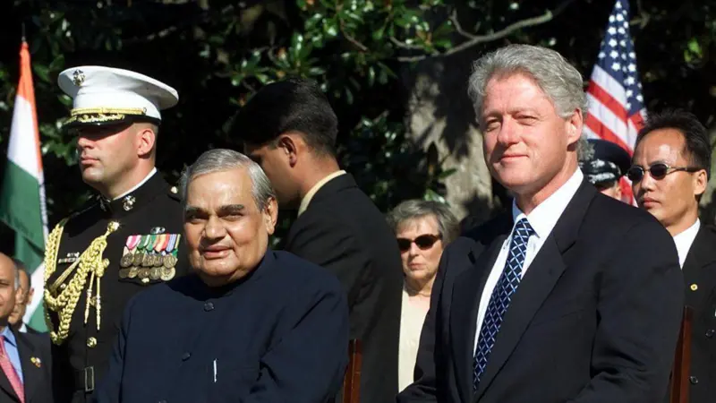 “কার্গিল যুদ্ধের সময়ে বিল ক্লিন্টন যখন মি. বাজপেয়ী আর নওয়াজ শরিফকে ওয়াশিংটনে আমন্ত্রণ জানালেন, তখন মি. বাজপেয়ী এই যুক্তি দেখিয়ে এড়িয়ে যান যে যতক্ষণ পাকিস্তানের একজন সৈনিকও ভারতের মাটিতে থাকবে, ততক্ষণ আমেরিকা যাব না,” লিখেছেন মি. সিনহা।