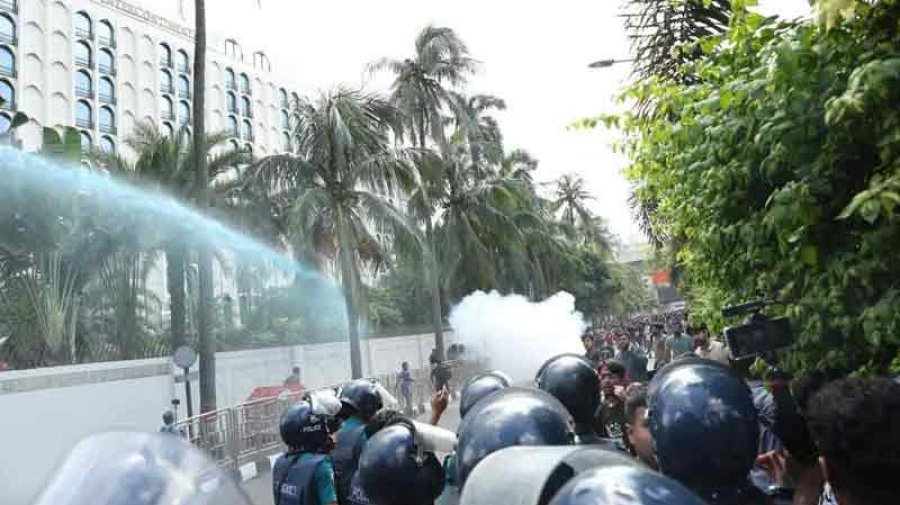 বুধবার দুপুর দেড়টার দিকে শিক্ষার্থীরা প্রধান উপদেষ্টার বাসভবন ‘যমুনা’র দিকে যেতে চাইলে পুলিশ বাধা দেয়। ইন্টারকন্টিনেন্টাল হোটেলের সামনে এ ঘটনা ঘটে।