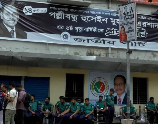 শনিবার সকাল থেকে জাতীয় পার্টির কাকরাইল কার্যালয় ঘিরে নিরাপত্তা জোরদার করা হয়