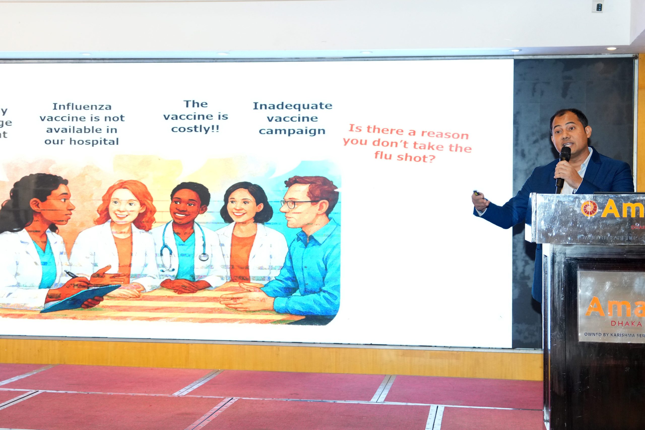 অভ্যন্তরীণ মেডিসিন, শিশু রোগ, স্ত্রীরোগ, কমিউনিটি মেডিসিন, শ্বাসযন্ত্র ও কিডনি রোগ বিশেষজ্ঞরা আলোচনায় অংশ নেন। লক্ষ্য ছিল ইনফ্লুয়েঞ্জার ঝুঁকি কমিয়ে চিকিৎসা ব্যবস্থার অংশ হিসেবে টিকা অন্তর্ভুক্তির পথ খোঁজা।