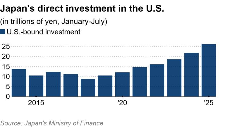 জাপানি কোম্পানিগুলোর যুক্তরাষ্ট্রে বিনিয়োগ এ বছর জানুয়ারি থেকে জুলাই পর্যন্ত ২০% বেড়ে দাঁড়িয়েছে ২৬.১৮ ট্রিলিয়ন ইয়েন (১৭৭ বিলিয়ন ডলার)। যুক্তরাষ্ট্রের অর্থনৈতিক প্রবৃদ্ধির প্রত্যাশা এবং প্রেসিডেন্ট ডোনাল্ড ট্রাম্পের শুল্ক এড়াতে স্থানীয় উৎপাদন বাড়ানোর পরিকল্পনাই এ বৃদ্ধির মূল কারণ।
