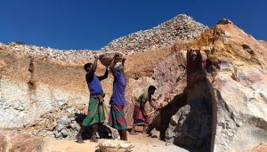 - খাদানে শ্রমিকরা মাটি কাটেন।