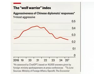 সাম্প্রতিক সপ্তাহগুলোতে বেইজিং ছিল বিশ্বনেতাদের আনাগোনায় ভরপুর। ২০ জনেরও বেশি নেতা চীন সফর করেছেন জাঁকজমকপূর্ণ অনুষ্ঠানে। পরের মাসে সাবেক মার্কিন প্রেসিডেন্ট ডোনাল্ড ট্রাম্প চীন সফর করলে আরও বড় আয়োজনের সম্ভাবনা রয়েছে। এই প্রেক্ষাপটে চীনের জন্য সবচেয়ে গুরুত্বপূর্ণ বিষয় হলো—কী বলা হবে এবং কোন ভঙ্গিতে বলা হবে। আমাদের তৈরি করা নতুন সূচক জানাচ্ছে, সাম্প্রতিক বছরগুলিতে বহুল ব্যবহৃত এক ধরনের কূটনৈতিক ভঙ্গি এখন আর দেখা যাবে না—যেটি পরিচিত ছিল “উলফ ওয়ারিয়ার” নামে।