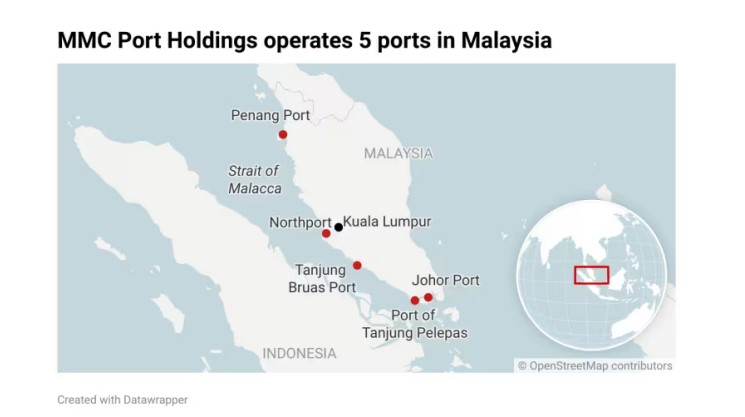 এমএমসি পোর্ট মালাক্কা প্রণালীর পাশে পাঁচটি টার্মিনাল পরিচালনা করে—তানজুং পেলেপাস, জোহর পোর্ট, নর্থপোর্ট, পেনাং পোর্ট ও তানজুং ব্রুয়াস পোর্ট। মালাক্কা প্রণালী বৈশ্বিক শিপিংয়ের অন্যতম প্রধান রুট। কোম্পানির তথ্য অনুযায়ী, গত বছর পাঁচটির মধ্যে চারটি বন্দর মালয়েশিয়ার শীর্ষ পাঁচে স্থান পেয়েছে, আর দুটি দক্ষিণ-পূর্ব এশিয়ার শীর্ষ সাতের মধ্যে ছিল।