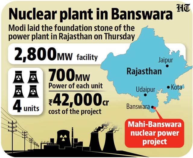 এর আগে রাজস্থানের বানসওয়ারায় এক জনসভায় মোদি বলেন, কংগ্রেস সরকার বিদ্যুতের গুরুত্বকে অবহেলা করেছে। তিনি সেখানে ৪২ হাজার কোটি রুপি ব্যয়ে একটি পারমাণবিক বিদ্যুৎ প্রকল্পের ভিত্তি প্রস্তর স্থাপন করেন। তার ভাষায়, “কংগ্রেস আমলে গ্রামে দিনে ৪-৫ ঘণ্টা বিদ্যুৎ থাকলেই মানুষ খুশি হতো। আজ সেই পরিস্থিতি পাল্টেছে।”