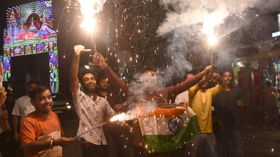 দিল্লি, মুম্বাই, পাটনা থেকে শুরু করে জম্মু ও কাশ্মীর পর্যন্ত সর্বত্র ছড়িয়ে পড়ে উল্লাস। ভক্তরা ঢোল বাজিয়ে, নাচ করে আর আতশবাজি ফাটিয়ে জয় উদযাপন করেন। কানপুরে রাস্তায় নেমে ভক্তদের আনন্দ মিছিল চলে। মুম্বাইয়ে উল্লাসে ভক্তরা দলে দলে বেরিয়ে আসেন, ঢোলের তালে নাচেন। জম্মু ও কাশ্মীরেও ভারতীয় পতাকা হাতে ভক্তদের উল্লাস দেখা যায়।