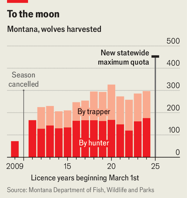 ২০১১ সালে, নর্থার্ন রকিস অঞ্চলের নেকড়ে ফেডারেল সুরক্ষা থেকে মুক্তি পাওয়ার পর থেকেই তাদের শিকার শুরু হয়। এরপর থেকেই, নেকড়ে সংখ্যা কমে গেছে। আগস্টে একটি ফেডারেল আদালত রাজ্যকে আরও বেশি কিছু পদক্ষেপ নিতে বলেছে। তবে, রিপাবলিকানরা এটিকে “ফেডারেল হস্তক্ষেপ” বলে অভিহিত করেছে। মন্টানার গভর্নর গ্রেগ গিয়ানফোর্টের মুখপাত্র বলেছেন, “এটি পরিবেশবাদীদের পক্ষ থেকে একটি অত্যন্ত সক্রিয় সিদ্ধান্ত,” এবং দাবি করেছেন, নেকড়ে সংখ্যা “স্বাস্থ্যকর এবং টেকসই।” তাঁর প্রশাসন আরও বেশি কোটা এবং প্রতি নেকড়ে ১,০০০ ডলার বাউন্টি প্রস্তাব করেছে। যদিও, লাইসেন্সপ্রাপ্ত শিকারীদের মধ্যে মাত্র ২% নেকড়ে হত্যা করেন।
