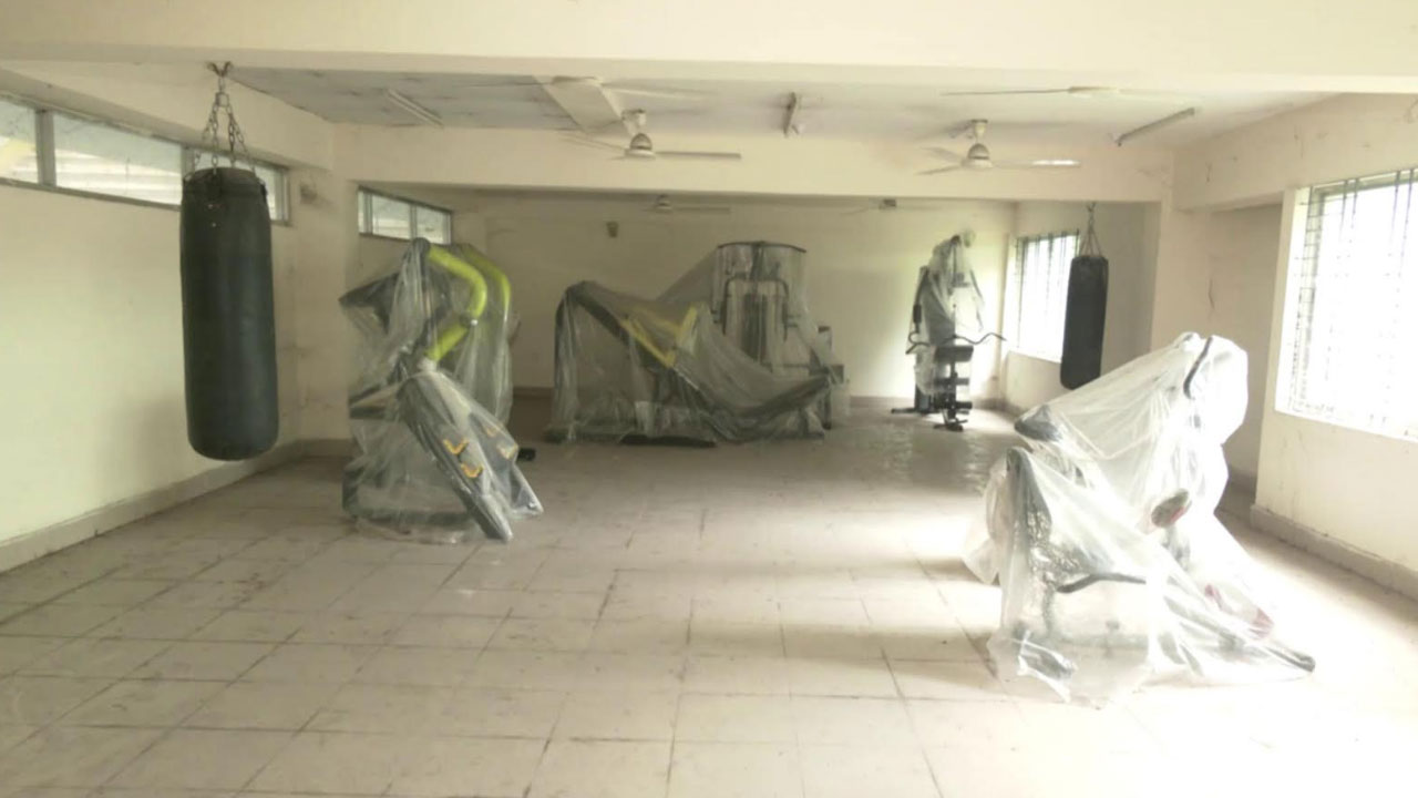 কমপ্লেক্সের অবস্থা ভয়াবহ—ভাঙা জানালা, স্যাঁতস্যাঁতে দেয়াল, খসে পড়া প্লাস্টার আর জীর্ণ কোণ। জিমনেসিয়াম তালাবদ্ধ, ডরমিটরিতে ধুলা আর মাকড়সার জাল, মেঝেতে শ্যাওলার দাগ। আধুনিক সুযোগ-সুবিধার প্রতিশ্রুতি এখন কেবল স্মৃতি।
