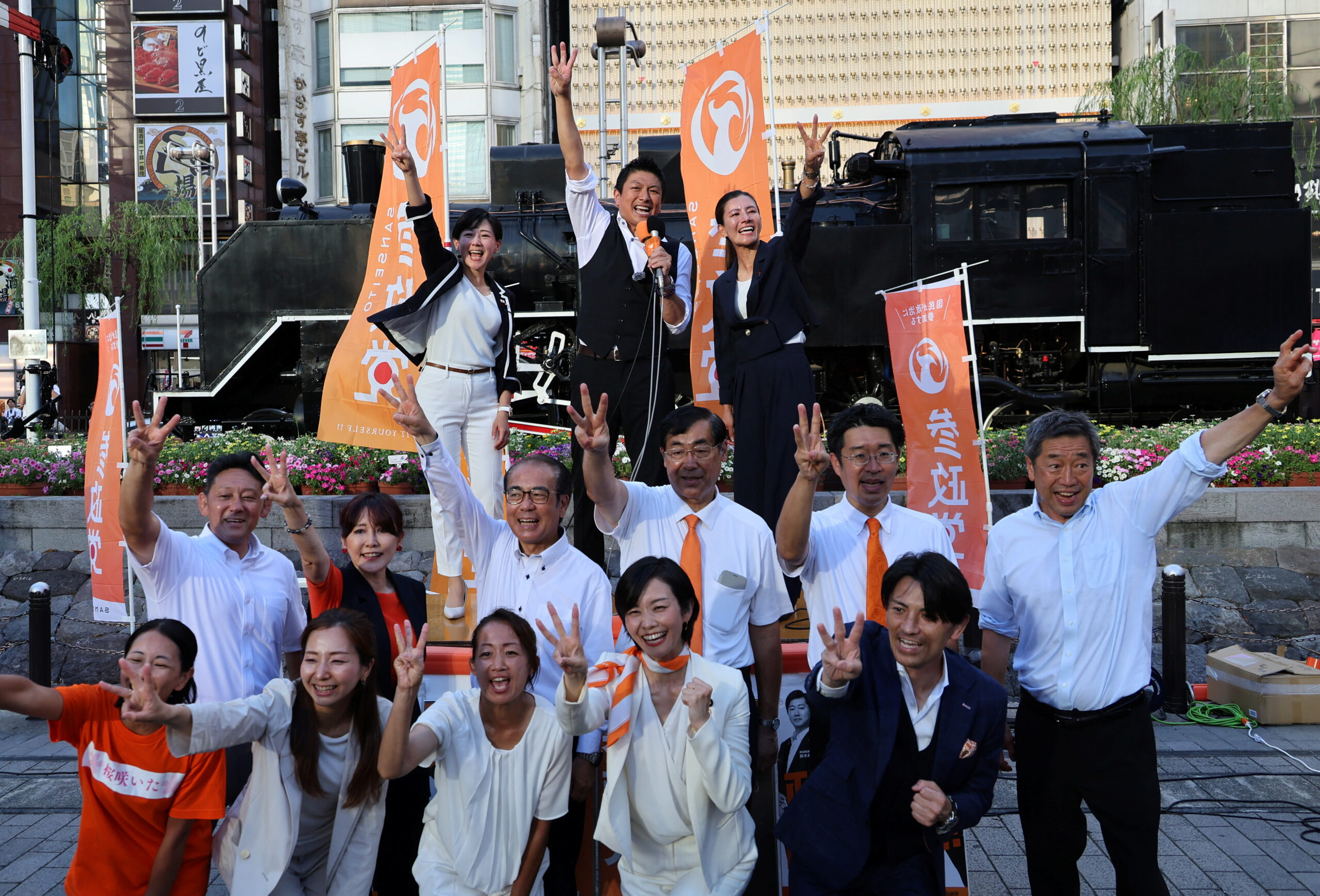 ধূসর স্যুট পরা বৃদ্ধ রাজনীতিবিদদের ভিড়ে সানসেইতো এসেছে তরুণ নেতৃত্ব, উজ্জ্বল কমলা প্রচারণা ও সামাজিক মাধ্যমের শক্তি নিয়ে।