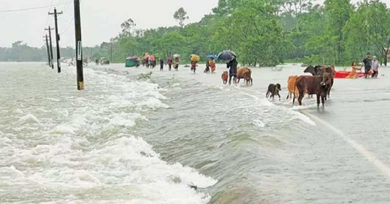 ভারি বৃষ্টি ও উজান থেকে নেমে আসা ঢল