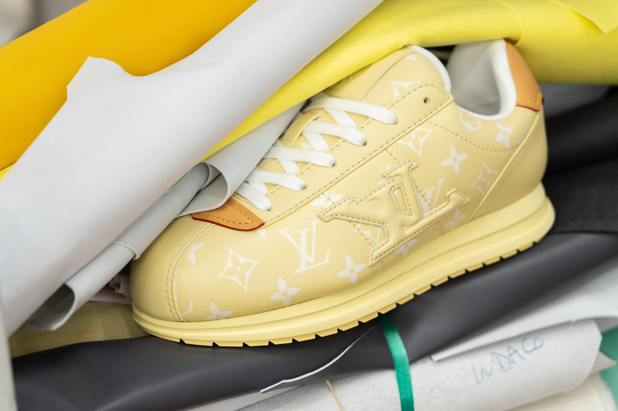 ভেনিসের কাছে ফিয়েসো দ’আর্টিকোতে লুই ভুইতঁর জুতোর কারখানা। ২০০৮ সালে খোলা ১.৫ লাখ বর্গফুটের এই স্থাপনায় ৫০০ জন কাজ করেন, অর্ধেকের বেশি দক্ষ কারিগর। প্রকৌশল ও শিল্পকলা মিলিয়ে এখানে প্রোটোটাইপ থেকে ফাইনাল পণ্য—সবই হয় এক ছাদের নিচে। লুই ভুইতঁ বাটারসফট স্নিকার তৈরি হয় চারটি ওয়ার্কশপে, যার দু’টি পুরোই স্নিকার নিবেদিত। একটি জোড়া বানাতে লাগে ২৫০টিরও বেশি ধাপ—কাটা, সেলাই, জোড়া, ফিনিশিং। দাম ১,১৫০ থেকে ১,৩৪০ ডলার; যুক্তিসঙ্গত লাগে যখন দেখবেন হাতের কাজের সূক্ষ্মতা।