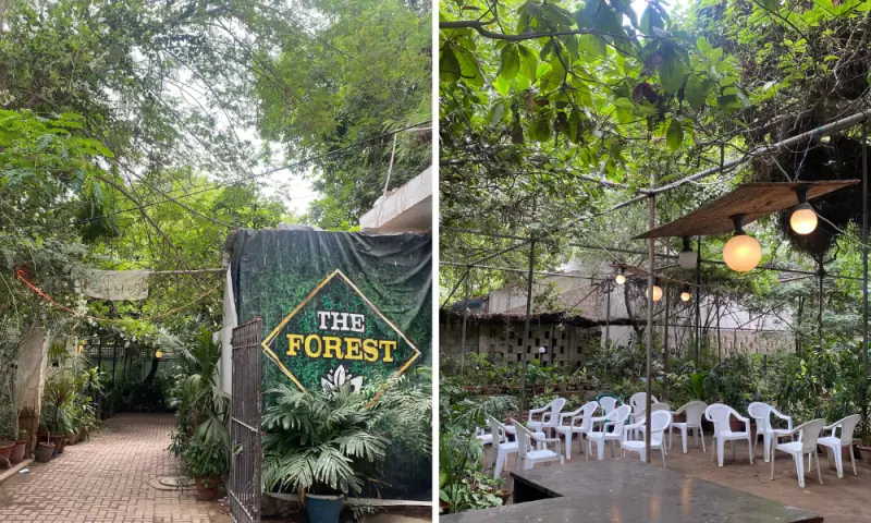 আমার পছন্দের জায়গা ছিল “দ্য ফরেস্ট ক্যাফে”—অর্ধ-খোলা আকাশের নিচে, গাছের শিকড়-পাতা জড়িয়ে তৈরি ছাউনি, ঝুলন্ত বাতি, আর প্লাস্টিকের সাদা চেয়ার।