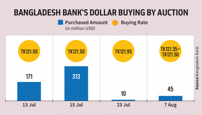 বাংলাদেশ ব্যাংক এখন বাণিজ্যিক ব্যাংকগুলোর কাছ থেকে নিলামের মাধ্যমে ডলার কিনছে। অর্থাৎ, ব্যাংকগুলো তাদের ডলার বিক্রির প্রস্তাব জমা দেয় এবং কেন্দ্রীয় ব্যাংক নির্দিষ্ট কাট-অফ রেট নির্ধারণ করে। এই পদ্ধতি বিদেশি মুদ্রা বাজারে “স্পট মার্কেট হস্তক্ষেপ” হিসেবে বিবেচিত হয়।