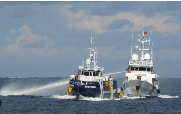 দক্ষিণ চীন সাগরের থিতু (পাগ–আসা) দ্বীপের কাছে ফিলিপাইনের একটি সরকারি জাহাজে প্রথমে উচ্চচাপের জলকামান প্রয়োগ এবং পরে ধাক্কা দেয় চীনা কোস্টগার্ড—এমন অভিযোগ করেছে ম্যানিলা। ছবিতে দেখা যায়, জলধারার আঘাতে ফিলিপাইনের জাহাজ কেঁপে ওঠে এবং পরে সংঘর্ষ ঘটে। ক্ষয়ক্ষতি হয়েছে, তবে গুরুতর আহতের খবর নেই। ফিলিপাইন সরকার ঘটনাটিকে “বিপজ্জনক প্ররোচনা” বলে নিন্দা জানিয়ে কূটনৈতিক প্রতিবাদ পাঠিয়েছে এবং নিয়মিত টহল অব্যাহত রাখার ঘোষণা দিয়েছে। বেইজিং নিজেদের দায় অস্বীকার করে দক্ষিণ চীন সাগরে তাদের বিস্তৃত দাবিকেই জোর দিয়ে আসছে—যা ২০১৬ সালের হেগ ট্রাইব্যুনালের রায়ে খারিজ হয়।